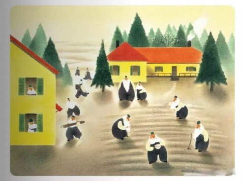 森林里的雪融化了,圣诞老人们开始给那些乖孩子准备礼物了。他们在田里洒下玩具的种子,然后浇上水;