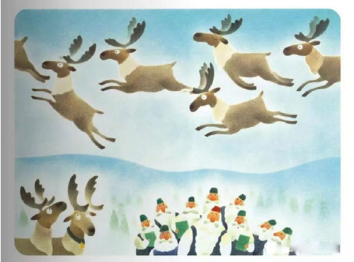 今天是驯鹿学校开学的日子。新入学的小驯鹿们要在这里学习拉雪橇和飞行。能在平安夜那天拉着雪橇是种荣誉,而成绩最好的驯鹿将被光荣地选为雪橇队队长。
