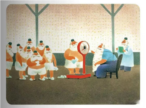 特别是要严格地测量腰围和体重,因为,如果圣诞老人们太重的话,驯鹿们就很难拉着他们飞上天去。
