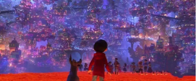 米格意外闯入亡灵界,见到了逝去的亲人,看到了五彩斑斓的亡灵世界。电影呈现出来的画面真的美到窒息,我邻座的小朋友说,原来奶奶去了这个地方。