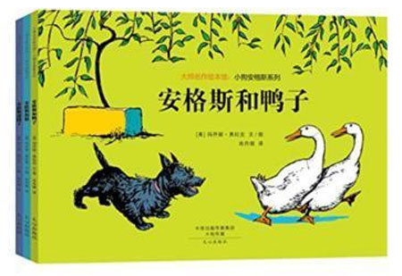 从前有一只小狗,他的名字叫安格斯。他是一只好奇心极强的小狗,他想知道的,就是绿树丛那一端是谁在整天“嘎嘎”地叫个不停。一天,门开着,它趁机冲了出去,钻过矮树篱笆一看,原来是两只雪白的鸭子。它冲着鸭子叫起来,吓得鸭子转身就逃。可追着追着,想不到两只鸭子调过头来追起它来了。