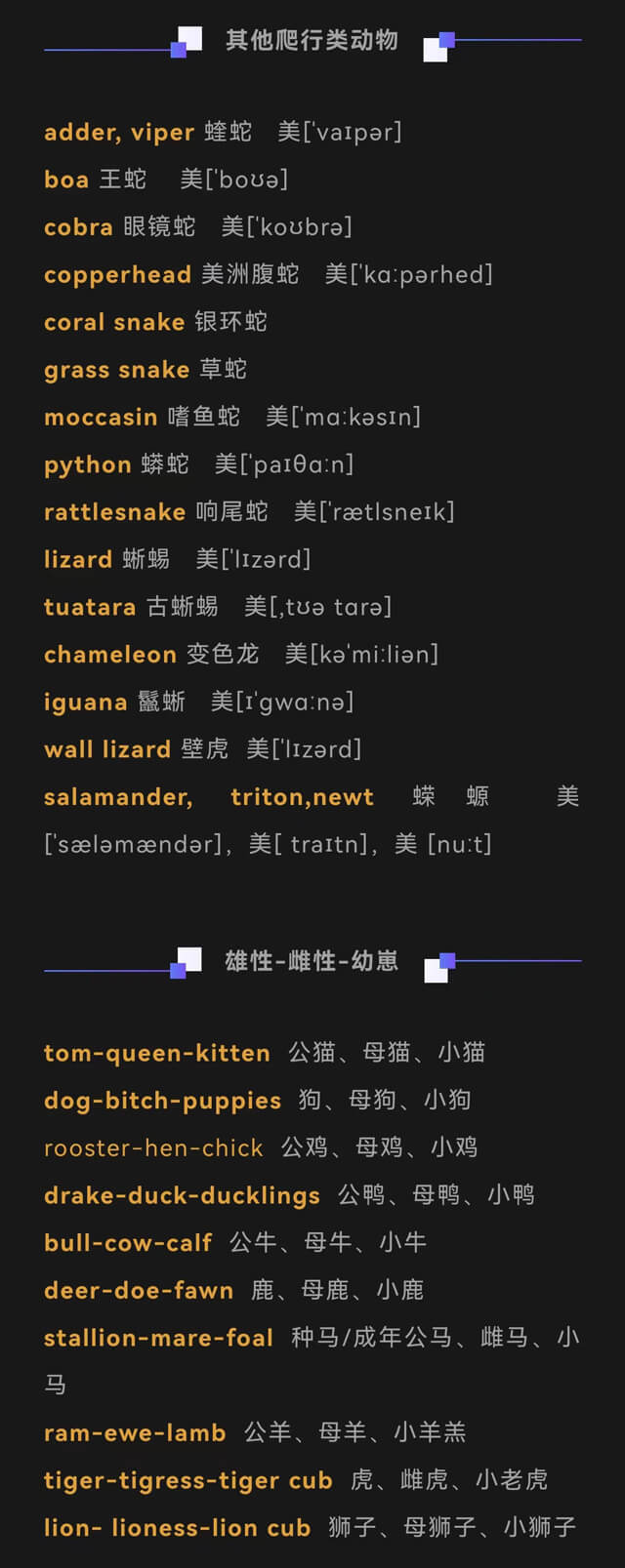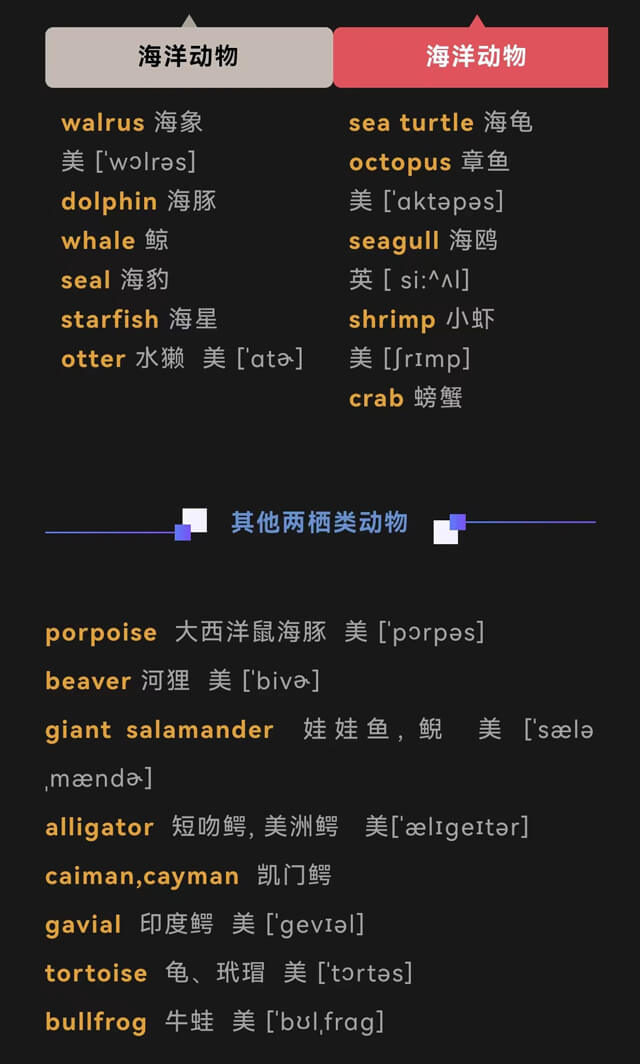 每个家庭都很重视孩子英语单词的学习,单词是孩子进行英语学习的基础,特别是读写方面的能力;可以说,单词量的高低,决定了一个孩子能否真正学好英语。为了让更多孩子,都能更好地、轻松地记忆单词...为各位老师、小朋友们准备了最全动物英语单词汇总,快来一起学一学吧!