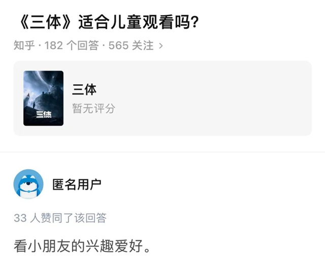 而正在热播的电视剧《三体》被不少网友们评价为“对原著的还原度极高”,这一点也得到了刘慈欣的认可。刘慈欣在接受采访时表示,电视剧《三体》里的演员十分出色,塑造的人物形象都很符合大家的想象,例如叶文洁塑造得就很成功。