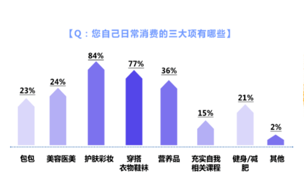 当妈妈后的日常消费,也以护肤彩妆、衣物鞋袜、营养品为主,重视外在美丽和内在健康,不再因有了孩子而敷衍自己。