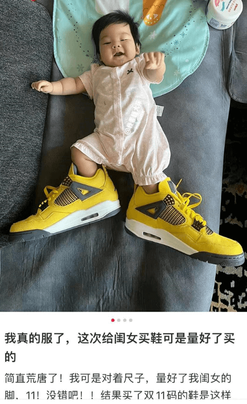 “真是服了,对着尺子量了闺女的脚,11厘米,怎么11码的鞋这么大呢!?”