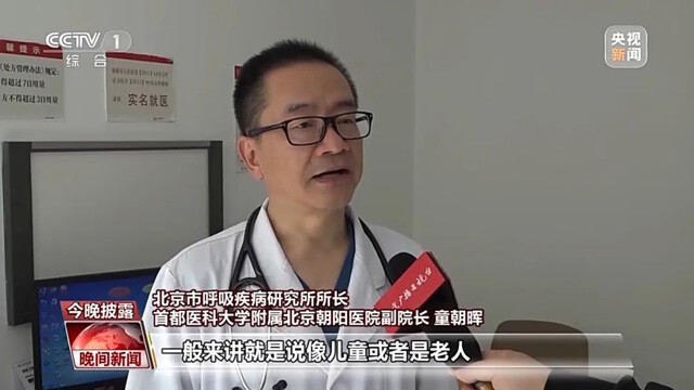 北京市呼吸疾病研究所所长、首都医科大学附属北京朝阳医院副院长童朝晖表示,一般来讲就是说像儿童或者是老人,还有一些免疫抑制人群,平时身体不太好,基础病比较多的,通常出现肺炎可能会到重症就住院了。但是轻的一些支原体肺炎往往还有一定的自限性。