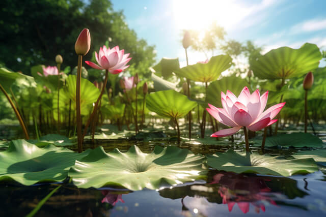 这是一首描绘“夏日雨过天霁,水中莲叶荷花”的小诗。