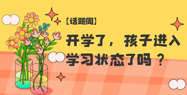 各位老师、家长大家好,开学一周,你家孩子进入学习状态了吗?假期中的孩子心态通常较为松弛,而开学后则相对紧张,两种状态的转换往往需要一段时间,家长不能操之过急。应循序渐进的帮助孩子把心收回来,逐步回归到正常的学习状态。