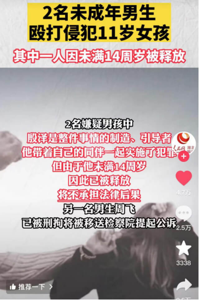 近年来,类似的猥亵事件越来越多,犯罪年龄也不断刷新下限。还记得之前大连10岁小女孩被13岁男孩蔡某哄骗至家中,强行侵犯遭反抗后残忍杀害的事件吗?当时新闻轰动一时,撕碎了无数人的心。