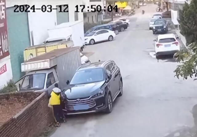 李某把她推到两台车的夹缝,这里比较隐蔽一些,随后,他的手在女孩身上开始乱摸。女孩的尖叫,痛哭声,听得我无比揪心。她边哭,边挣扎着走了几步,可禽兽一样的李某根本没有停手。在一览无余的空地上,他对着女孩上下其手。