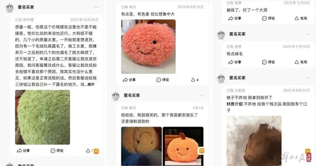 一家毛绒玩具店的客服告诉记者,六七元即可买到网红款娃娃,但产品无生产信息和标签。当记者追问产品生产企业和品牌时,客服爽快提供了相关信息。