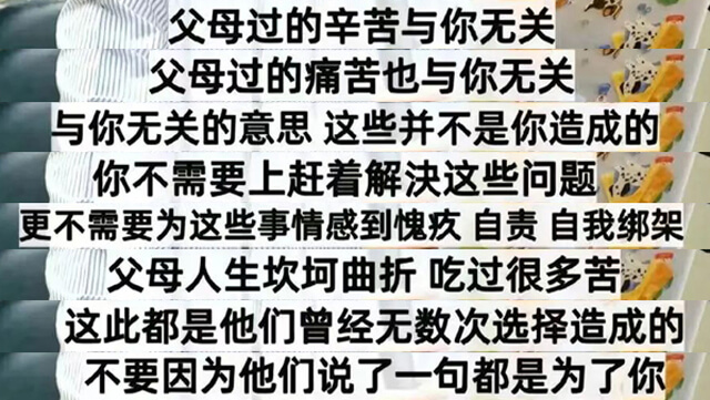 “父母过的辛苦与你无关。这些并不是由你造成,而是他们无数次选择造成。”