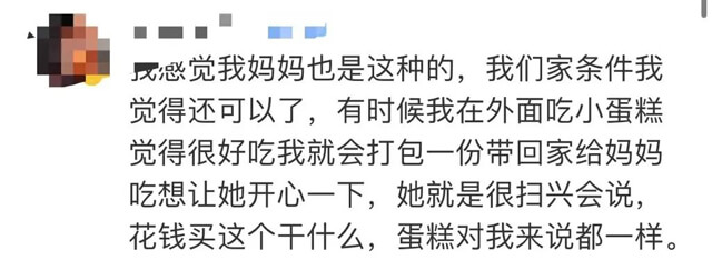 明明家里条件还可以,每次自己在外面吃到好吃的小蛋糕,都忍不住给妈妈也带回去一份。