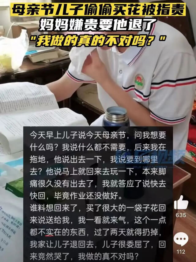 下一次,希望那个母亲节偷偷买花的孩子,不会再被劈头盖脸指责。