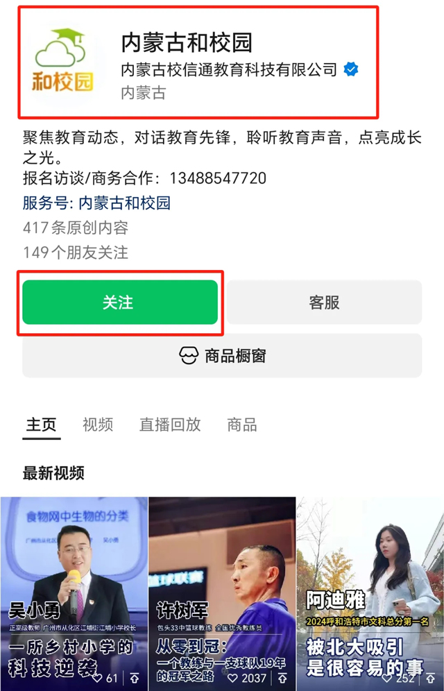 微信搜索【内蒙古和校园】视频号,并关注!
