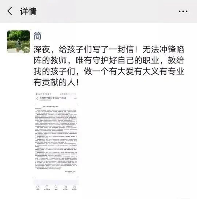 她在朋友圈感叹:但愿跪着的老师能教出“站着”的学生。