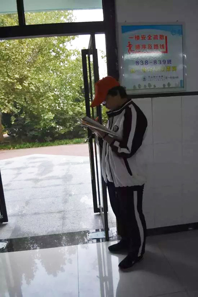 (衡中接待日的学生志愿者,趁空闲时间写作业)