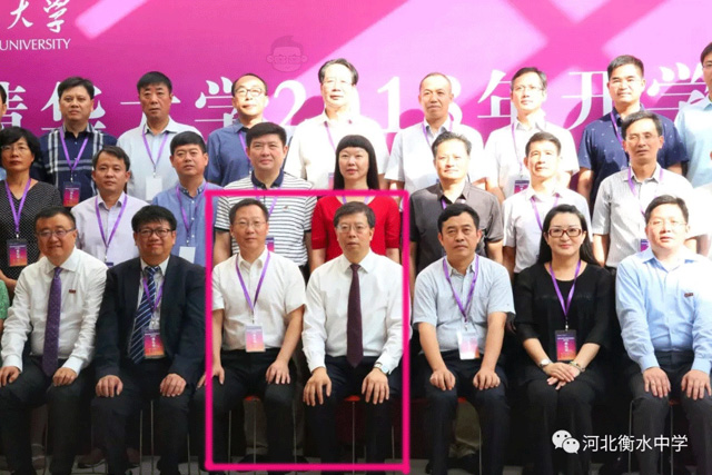 在2018年8月23日清华大学2018级本科生新生开学典礼结束后,一张清华校长与全国重点中学校长的合影流出,这张照片立即引起网友热议:“看郗校长合影座位就知道,衡中在清华心目中的位置!”,“衡中校长走哪里都是C位”。