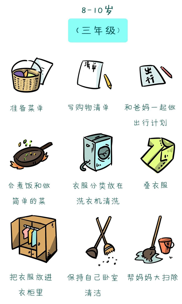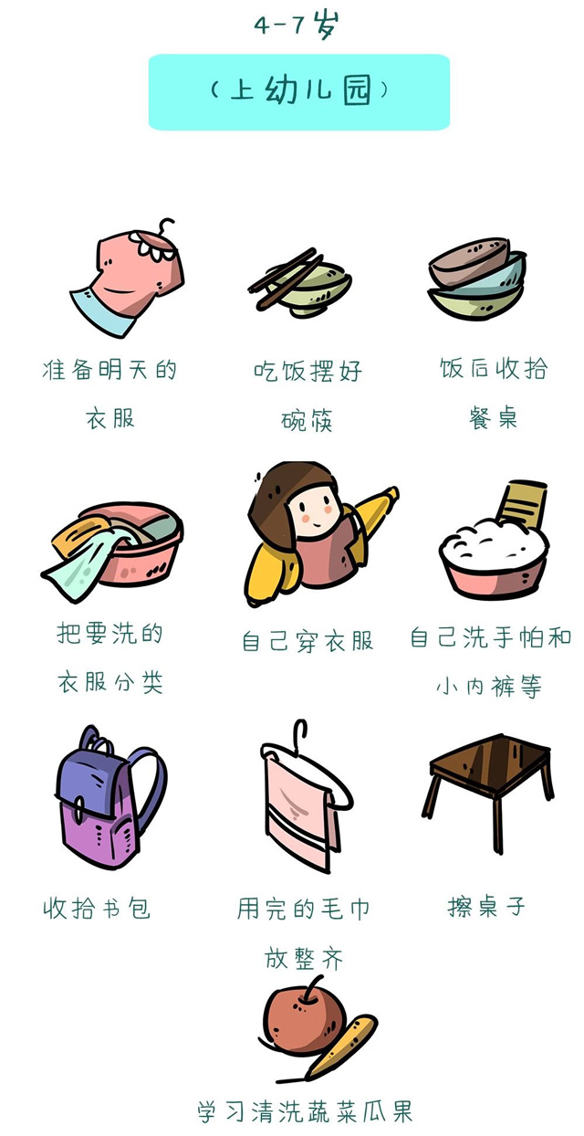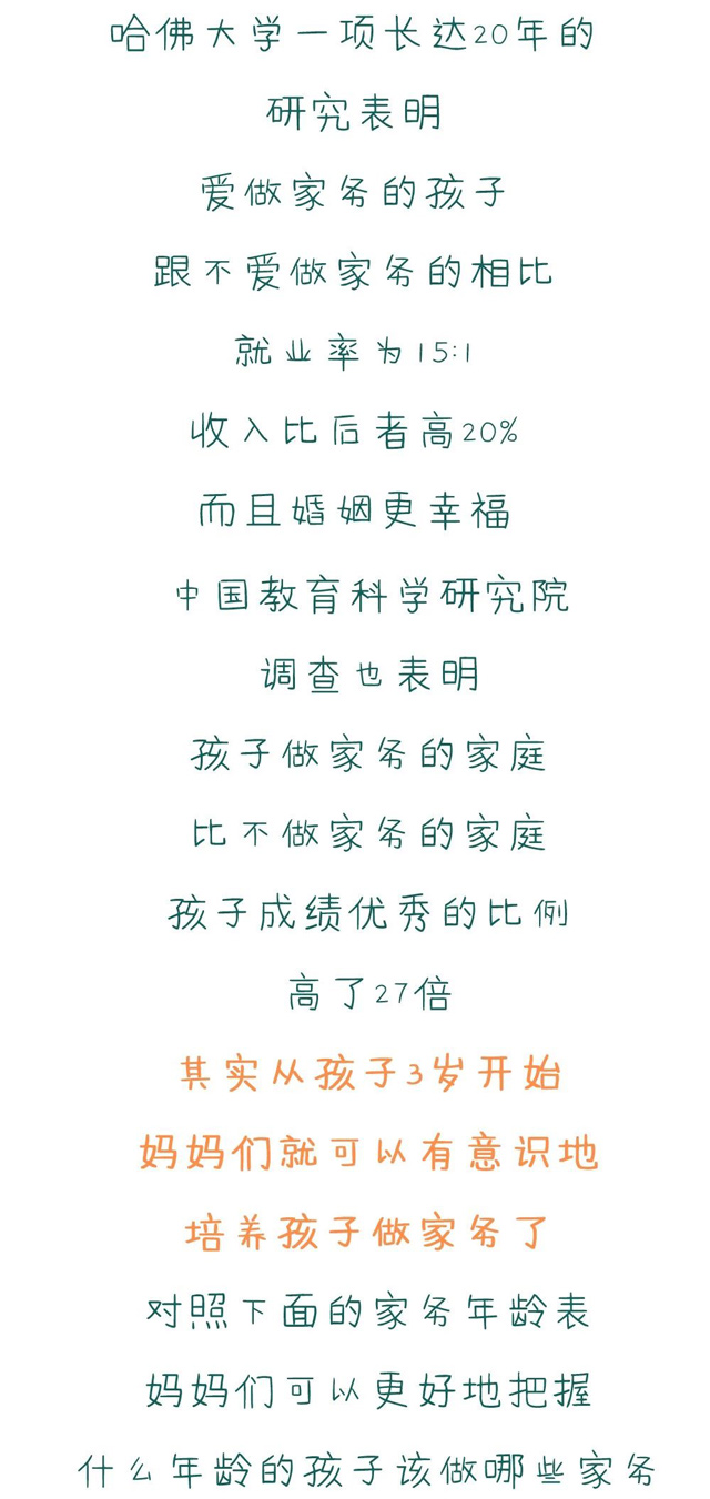 【家庭教育】儿童做家务年龄对照表,舍不得用孩子才害了他!