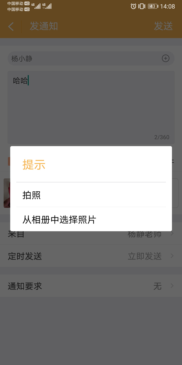 2.点击下方小“+”,选择“发通知”进入发公告页面;