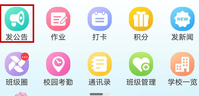 1.登录“和校园教师版”首页,点击“发公告”进入,这里包括收发和待发的通知、作业以及打卡内容;