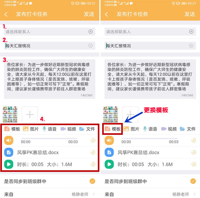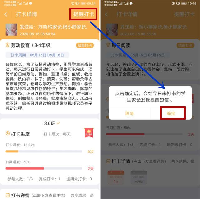 用“和校园教师版”呀,新添打卡功能,随时随地安排新任务,督促家长积极跟进,还有定时提醒哦!