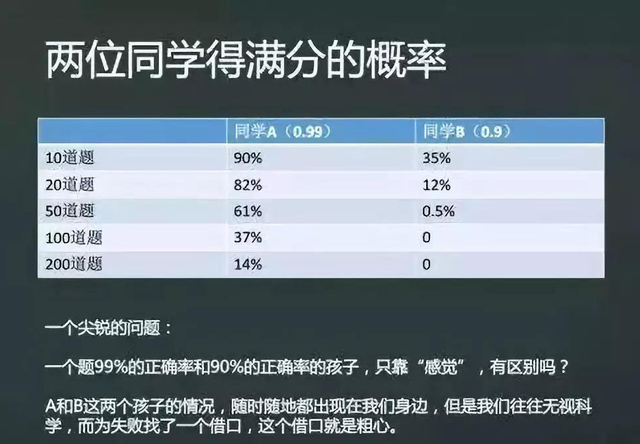 而概率因素导致平时错误率越高,考试时失分率越成倍增大。