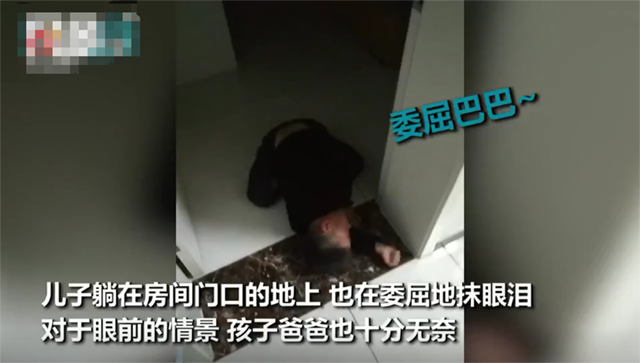 孩子也趴在门口,呜呜哭,视频里回荡着母子俩的阵阵哭声。