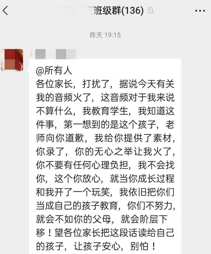 从古至今都在强调:作为一个师者,最主要的责任是教书育人!孩子有着怎样的家庭,家庭条件怎么样都是次要的东西,又怎么能够在大庭广众下气宇轩昂的出这种话!作为老师能够完全地授业解惑已实属不易,不保证教育的孩子都是人中龙凤,但也正直贤良!
