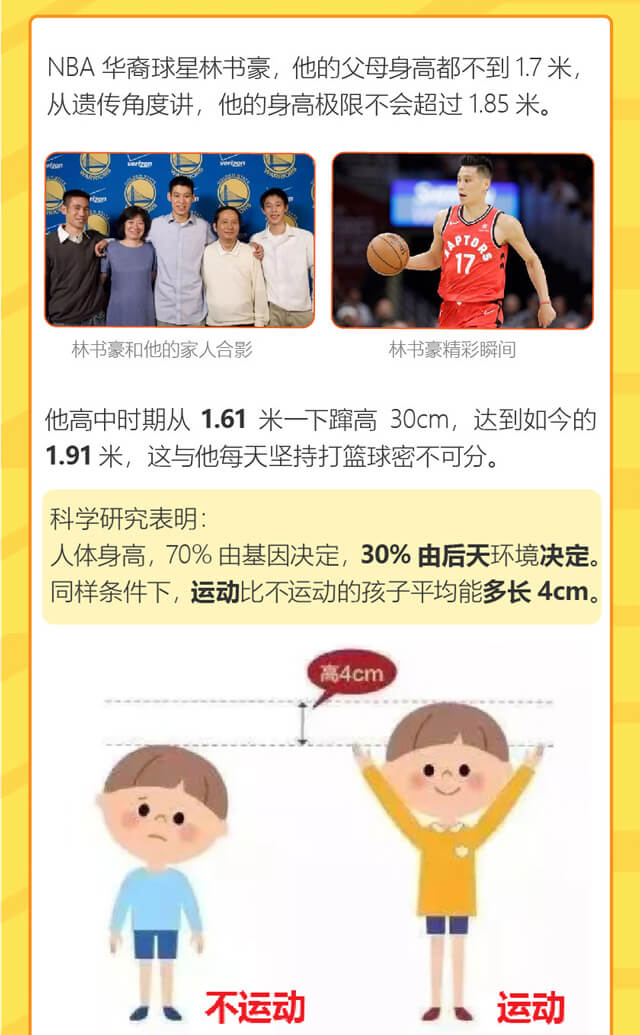 研究表明,经常运动的孩子要比不运动的平均高出2-3cm!