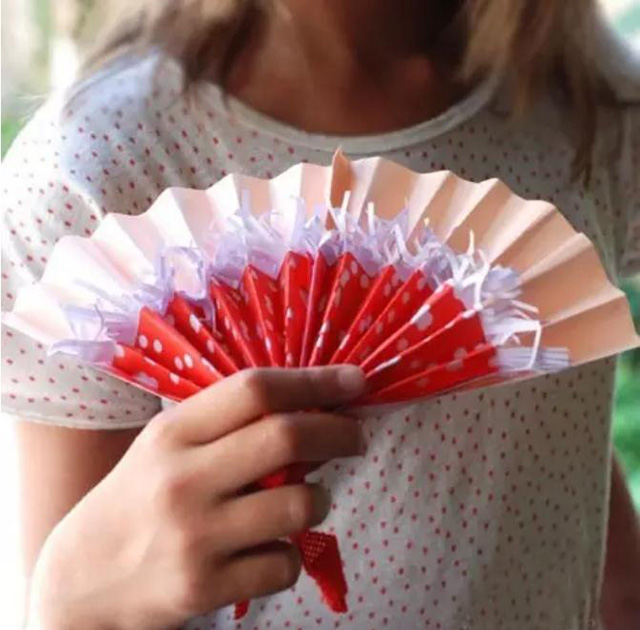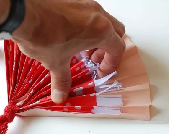 用手将须边随意摆弄,再将扇面展开,一把好看又实用的扇子就做好啦,是不是很赞