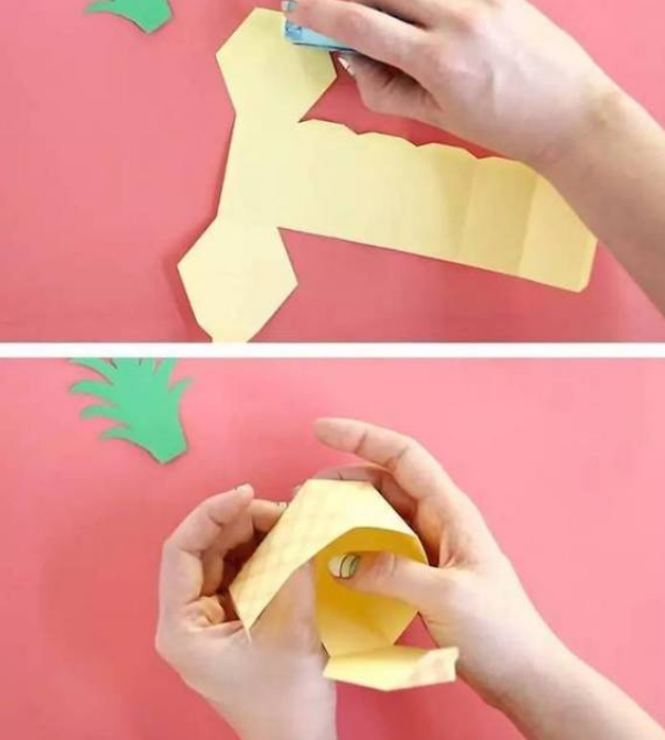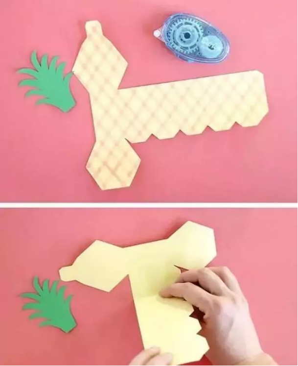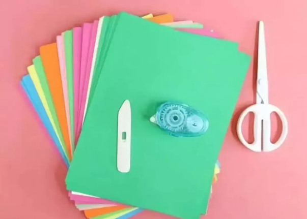准备材料:彩色卡片、剪刀、骨质刀、工艺刀、永久磁带轮、画笔、菠萝叶模板