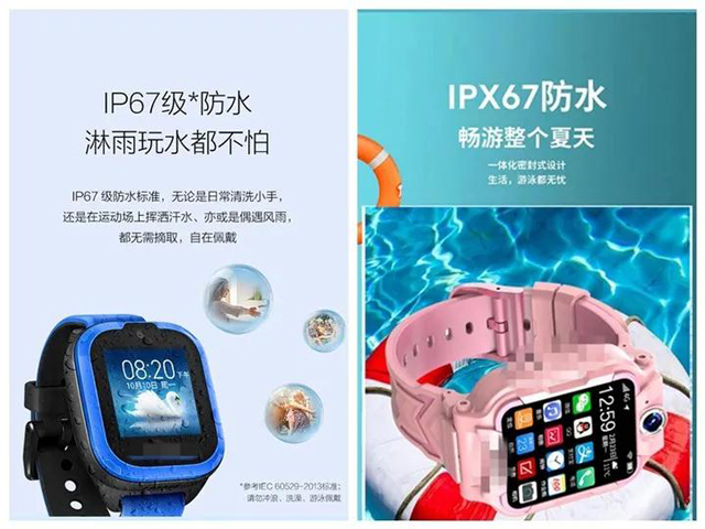 儿童手表大多标明是IPX67防水