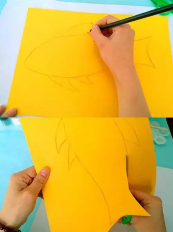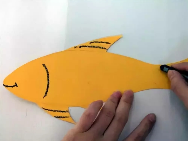 用铅笔画出小鱼的轮廓并用剪刀剪下来。