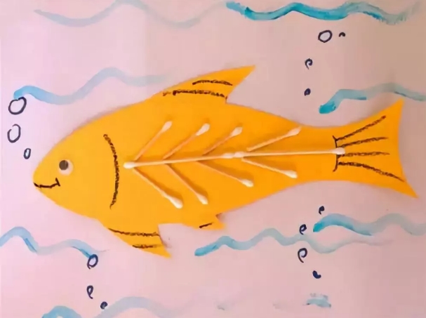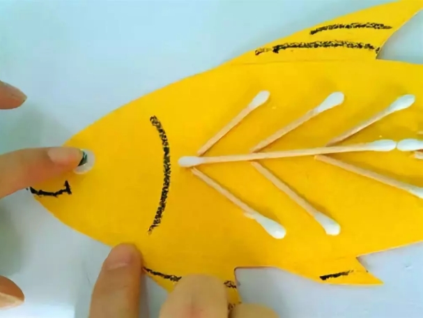 给小鱼添画上漂亮的花纹。你将棉签变成小鱼的骨头。