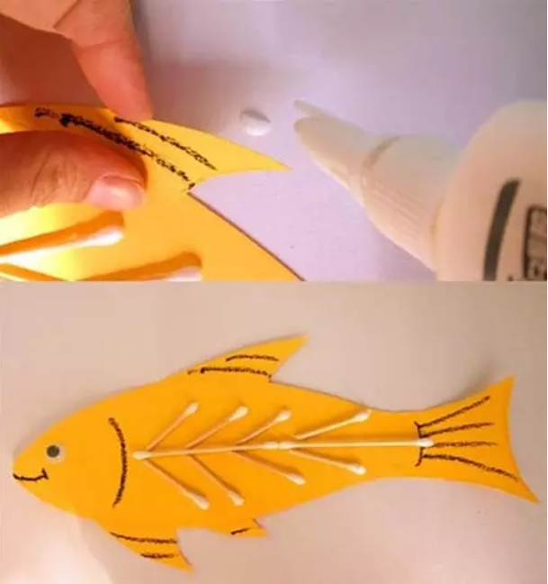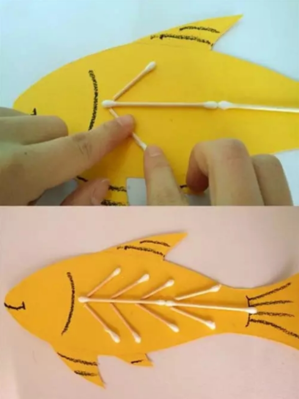 将棉签变成小鱼的骨头。