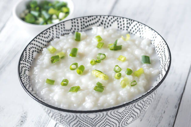 做法:大米淘洗干净放入锅中煮制成粥;将鸡蛋在碗中搅拌打散,缓慢淋入粥中,边煮边搅拌;再加入切碎的青菜熬煮3~5分钟,起锅前加适量的食盐调味即可。