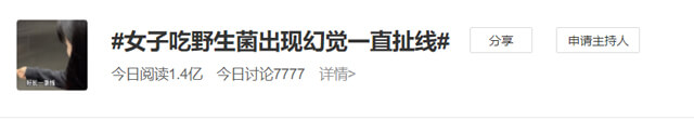 一女子吃了隔夜加热的野生菌后出现幻觉